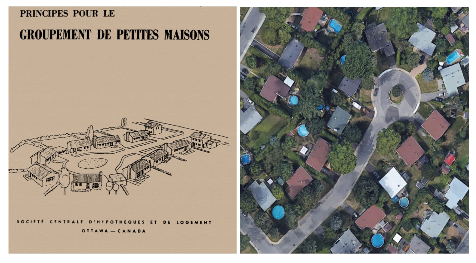 Le projet urbain de la SCHL est présenté dans l’ouvrage Housing Design publié en deux volets en 1952 et 1953. On y voit que la maison individuelle est conçue pour faire partie d’un système urbain complet, représentant les idéaux de banlieue-jardin états-unienne moderne...(2)Les projets Levittown développés par la firme Levitt and sons dans les états de New York, Pennsylvanie et New Jersey sont très représentatifs de cette banlieue-jardin apparue fin des années 1940 et début 1950 aux États-Unis. Ses types architecturaux, les techniques de construction employées inspirées des chaînes de production mises au point par Henry Ford, ses principes d'aménagement urbain de même que les pratiques de financement public ont très fortement inspiré les propositions de la SCHL. Pour en savoir plus sur Levittown